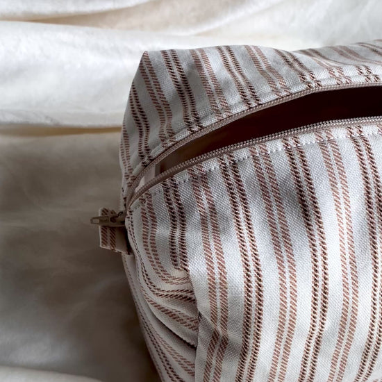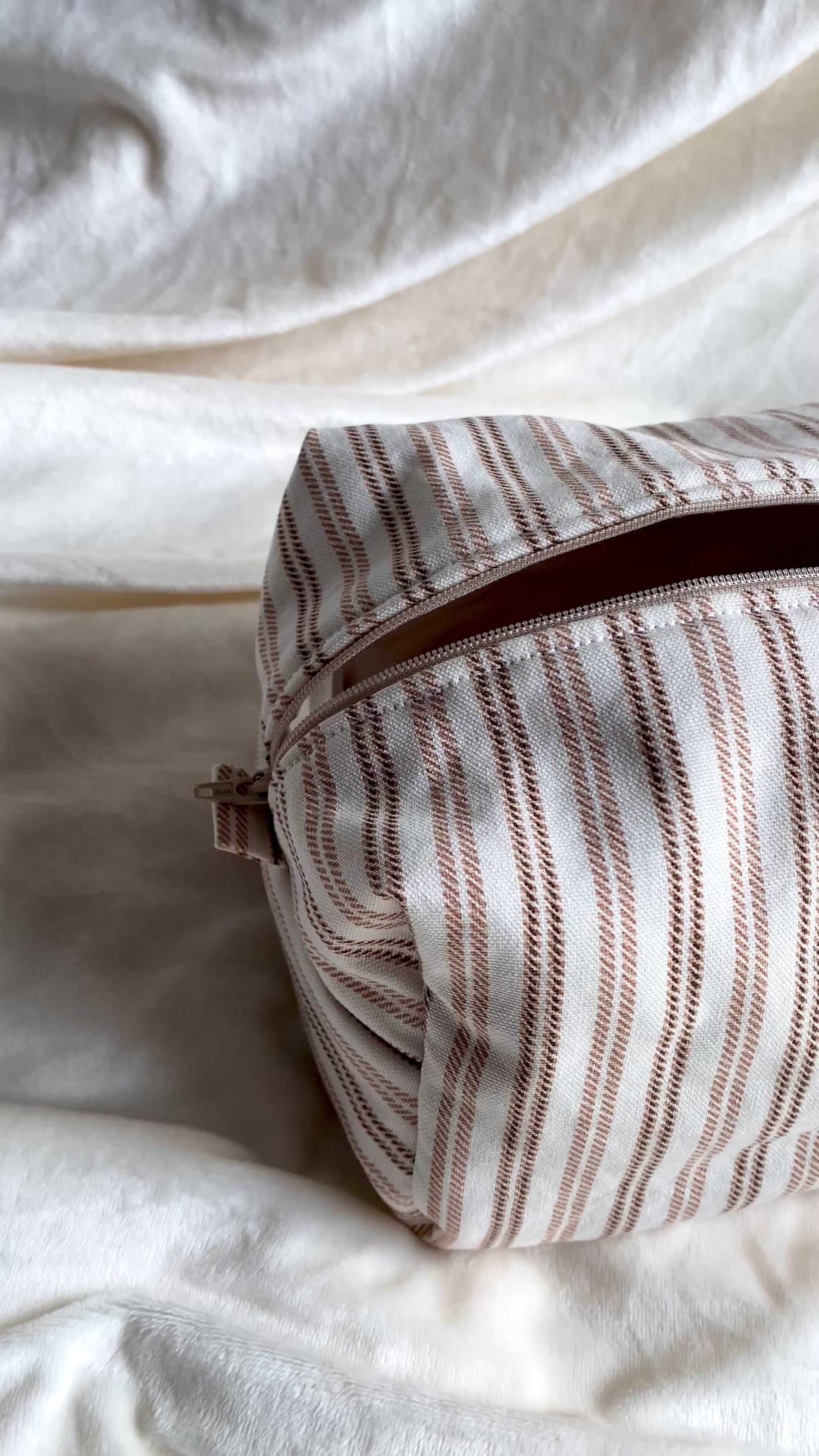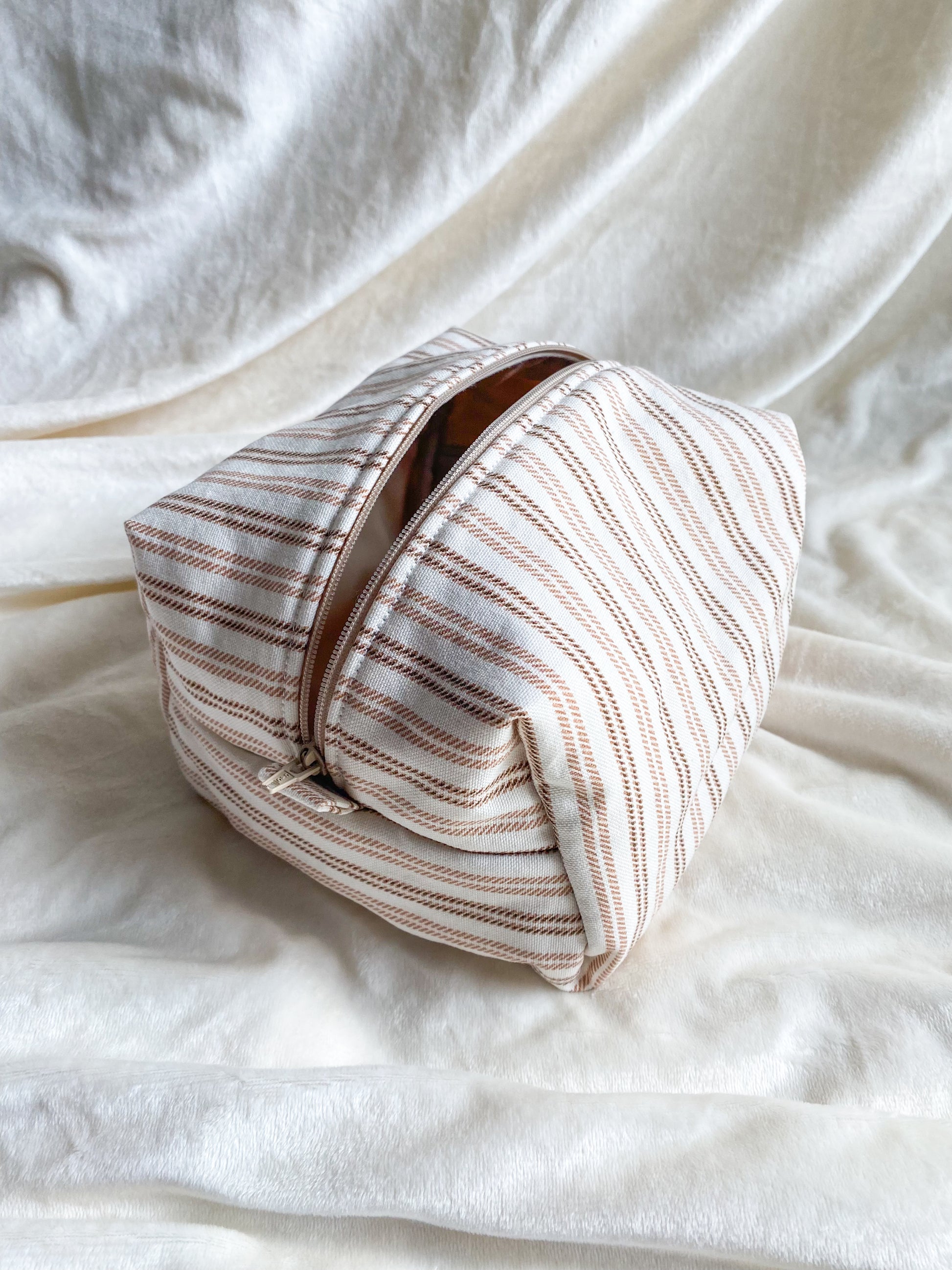 These Patterned Light Brown & Beige Makeup Box Pouch is made from 100% cotton fabric, offering a soft and breathable feel. Its exterior features a charming design of neutral shades of brown, while the interior is lined with a solid beige cotton. This stylish and durable pouch is perfect for storing your makeup essentials.