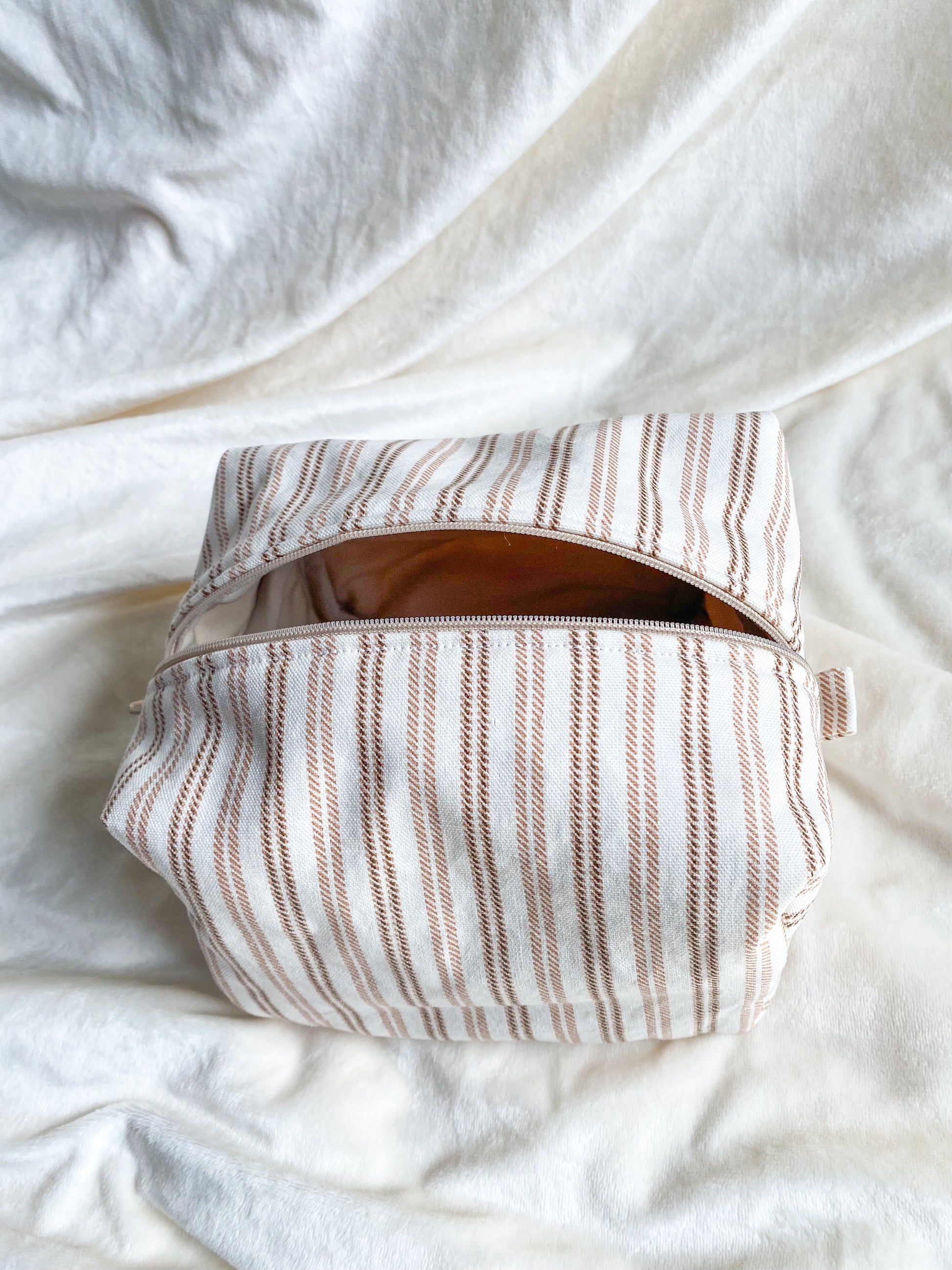 The measurements of this Oat Latte Makeup Box Pouch are 9 1/2’ x 6’.
