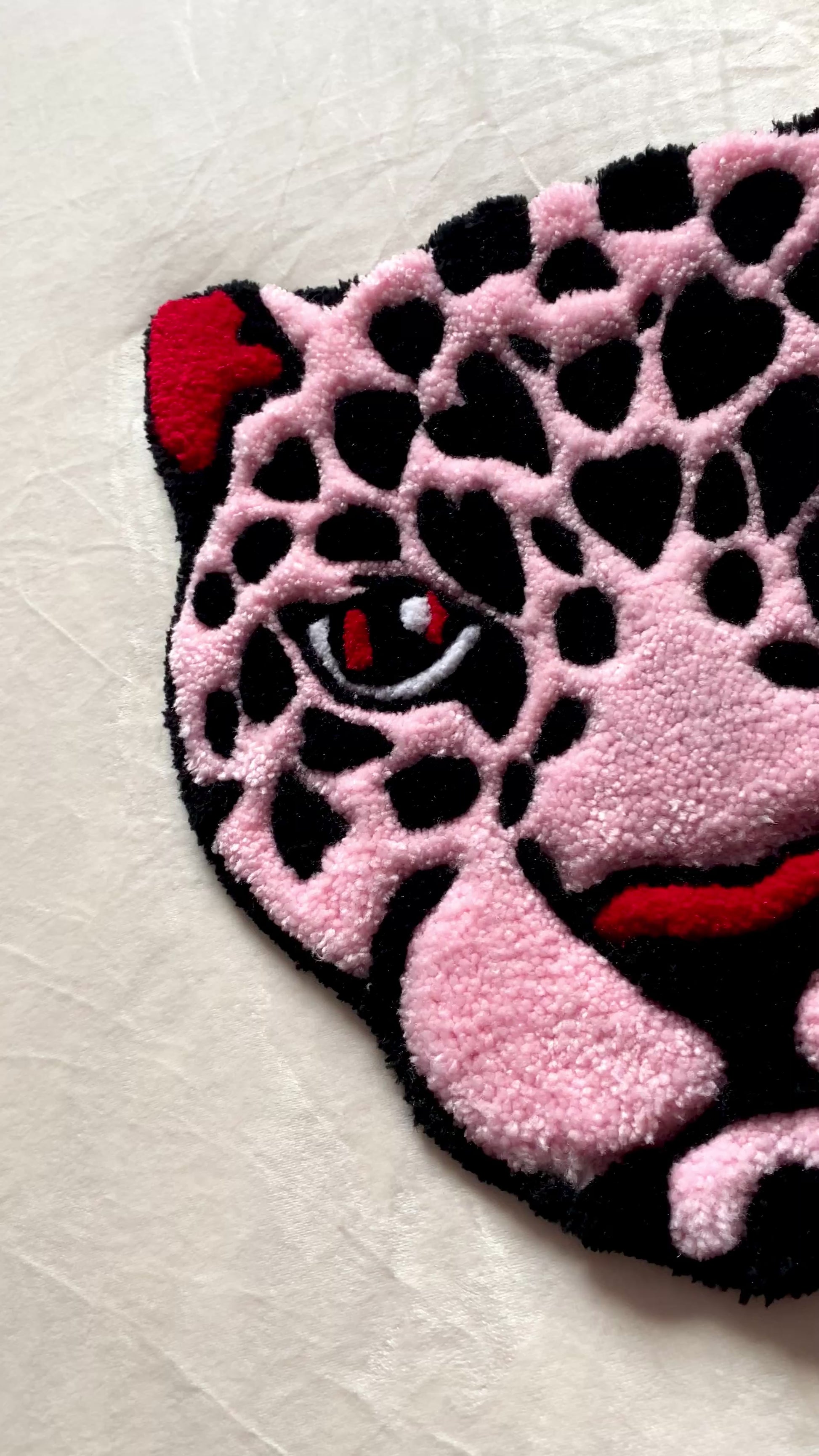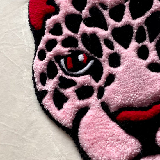 Transform your space with our striking Red & Pink Leopard Mini Rug! This captivating piece showcases an attention-grabbing leopard, illuminated by soft pink, vibrant red hues, and bold black accents that create a visually stunning contrast.